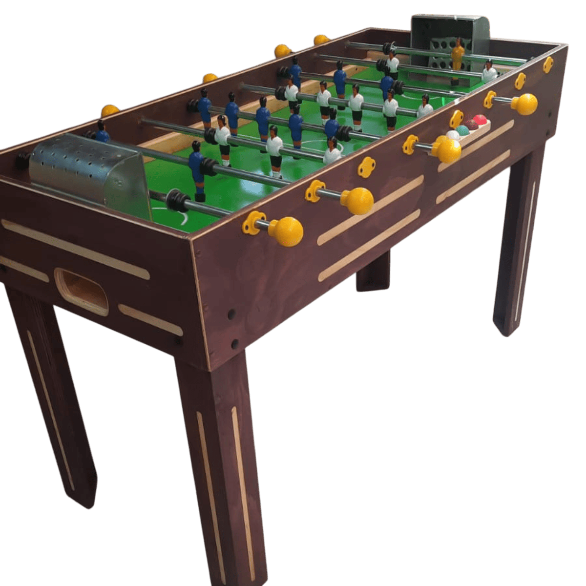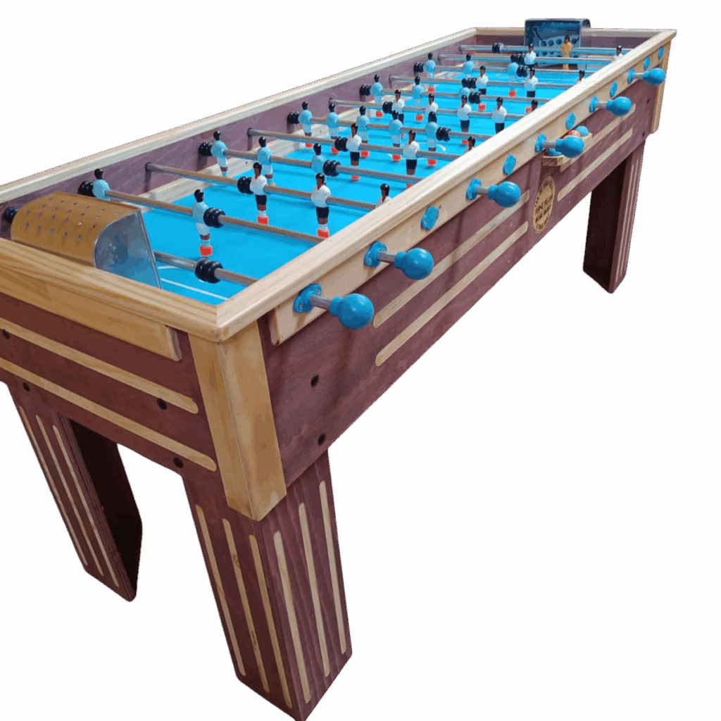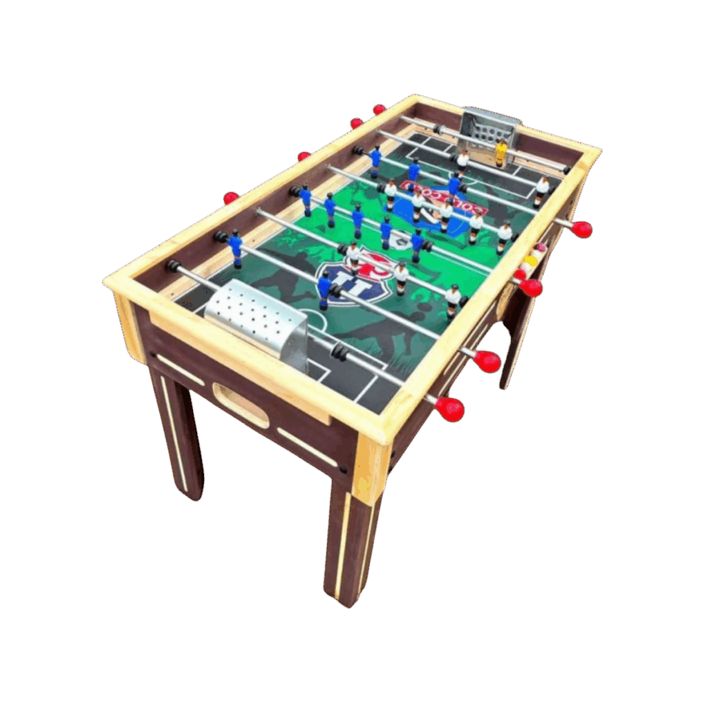 El Taca Taca Reforzado Personalizado con Diseño de Cancha es una mesa diseñada para uso intensivo, que combina alta resistencia estructural con la posibilidad de personalización gráfica. Este modelo permite incorporar diseños exclusivos en la cancha, tales como colores institucionales, logotipos o gráficos personalizados, convirtiéndose en una excelente alternativa para empresas, colegios, municipalidades y espacios recreativos que buscan un producto funcional y distintivo.